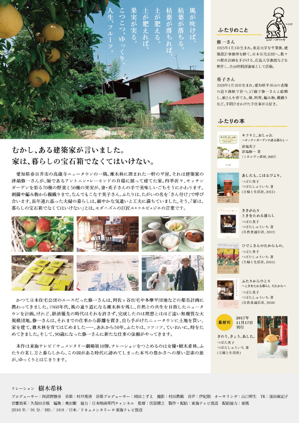 - 津端修一さん90歳、英子さん87歳。風と雑木林と、建築家夫婦の物語。「どうしても観たい!!」「また観たい!!」「あの人に観てほしい!!」そんな、わたしたちえこわいずスタッフの声から、今回の上映会が実現しました。心にそっと残る、おすすめの映画です。